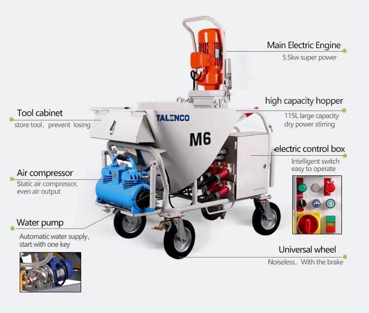 - High Efficiency: Spraying speed is 5–10 times faster than manual plastering, significantly reducing project timelines.